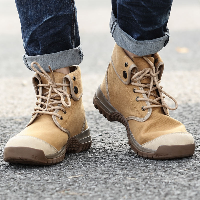Men's Canvas Tactical Boots Mid-cut Breathable Outdoor Boots