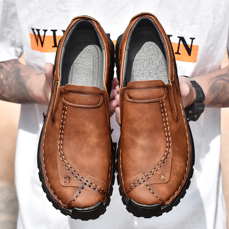 (⏰Clearance Sale-70%OFF🔥)Men’s Summer Casual Leather Shoes – Breathable Handmade Lace-Up Loafers, Walking Dress Flats for Driving, Business, and Office Wear