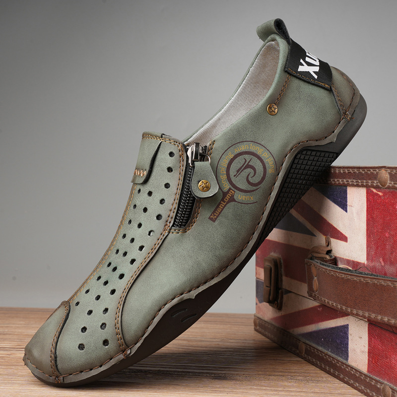 ⏰Last Day Deals 60% OFF🛒Men's Premium Leather Loafers – Arch Support Breathable Slip-On Shoes, Foot Pain Relief, Soft Anti-Puncture Sole, Durable Perforated Walking Dress Shoes
